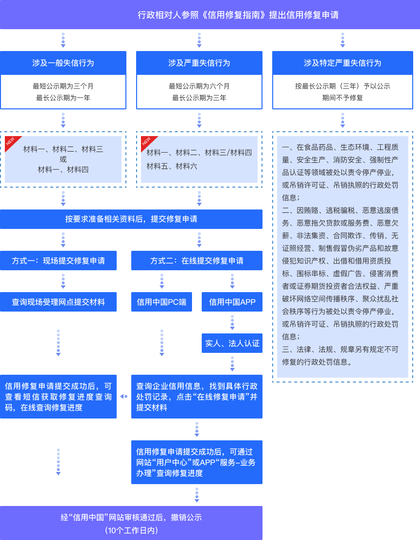 可通过“信用中国”网站及各省级信用门户网站免费下载“公共信用信息概况”(信用报告)或由第三方信用服务机构出具信用报告。 |